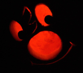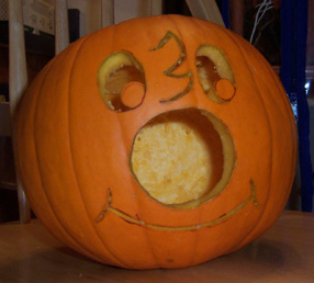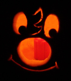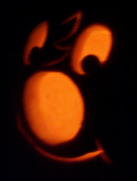 I carved this KC pumpkin as my Jack 'O Lantern Halloween of 2003. It looked great in the dark but didn't photograph so well. It looked fine for several days afterword but had to be thrown out when ultimately, not only did it mold, but foamed mold. My wife is allergic to mold. It wasn't pretty.