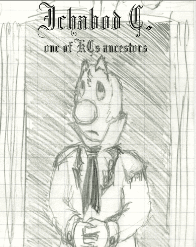 Pat says: This is a sketch done a while back of Ichabod C., one of KC's ancestors. It is intended to be a portrait painting in a future story.