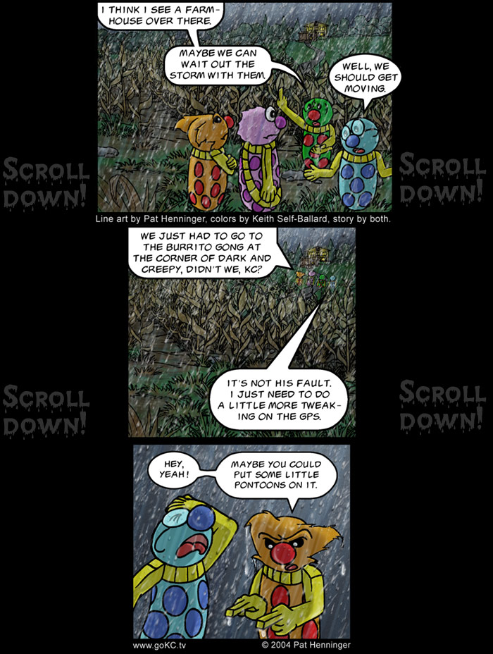 This week I would like to give a one-week overdue (time constraints last week) shout-out thanks to Duncan "Duke" McEwen. Duncan is a long-time friend of the goKC! staffers and was a Game Master of a role-playing game (RPG) that spawned a few concepts and situations that inspired this storyline, beginning with a homage in the form of the town name of Stalter. Keith and I were Player Characters (PCs) in that particular campaign, so this brings back some fond, if creepy, memories.